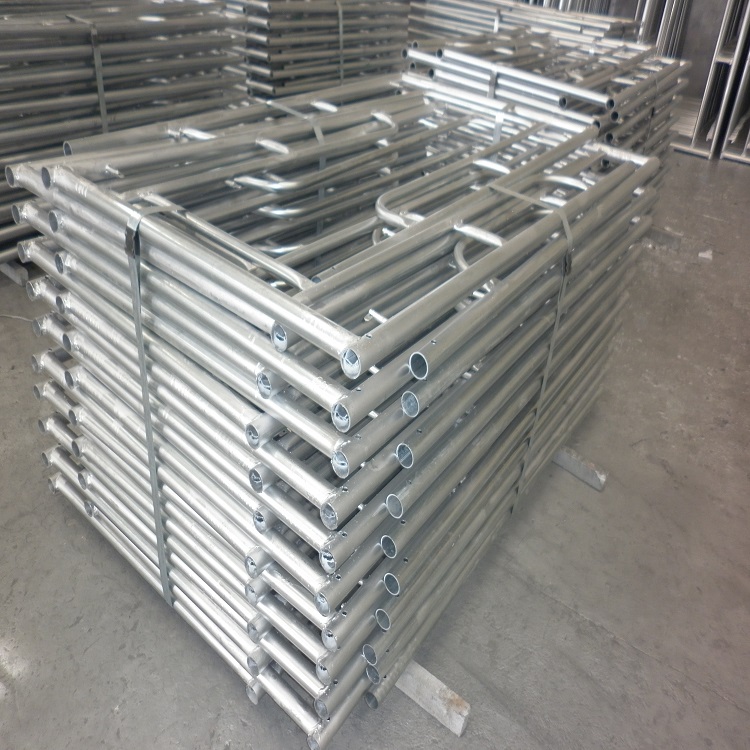 一、門式腳手架制作之外觀要求1.熱鍍鋅鋼管里外熱鍍鋅,表面鍍鋅要均勻無明顯下次,普通鋼管的表面要求無裂紋、凹凸、銹腐,加工前初始彎曲要小于L/1.000 (L等于長度,鋼管不得接長使用);2.對于水平架、鋼梯及腳手板而言,搭鉤必須用焊接或鉚接牢固;